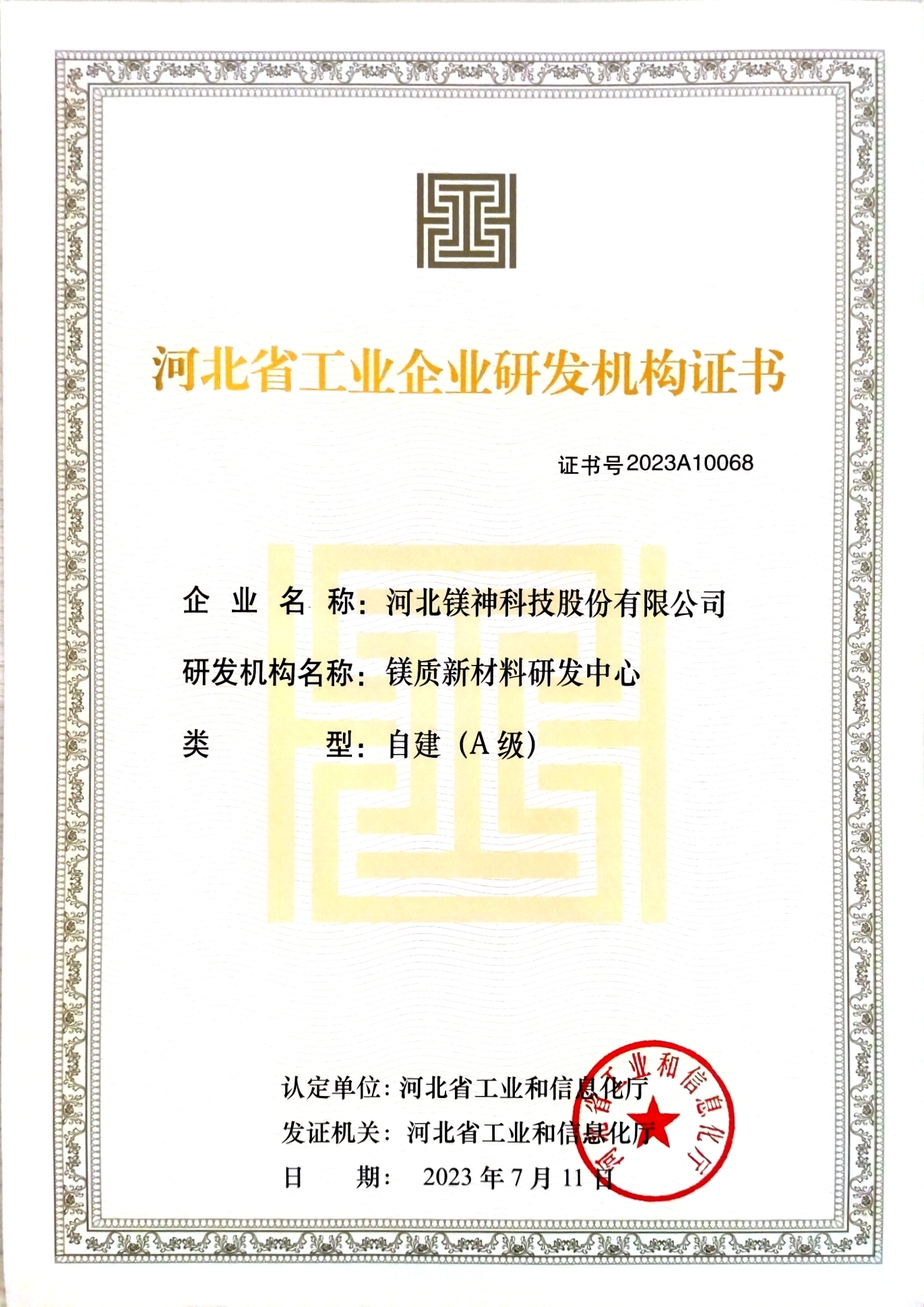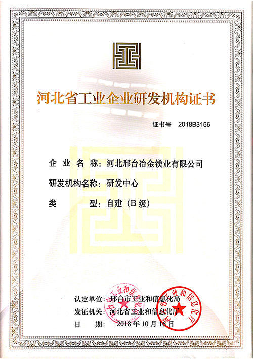 河北省工業企業研發機構證書